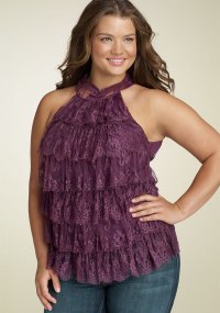 Американская пройма: очень красивое решение для тех, кто не стесняется полностью обнажить плечи. Топ с завязками на шее и достаточно глубоким в силу такого кроя декольте (с так называемой американской проймой), достаточно свободный от груди – пожалуй, самый сексуальный предмет одежды, который можно без опаски включить в гардероб plus-size. Топ с завязками на шее одновременно и исключительно красив, и абсолютно универсален – его можно носить и с повседневными джинсами, и с юбкой в качестве замены платью для вечеринки.